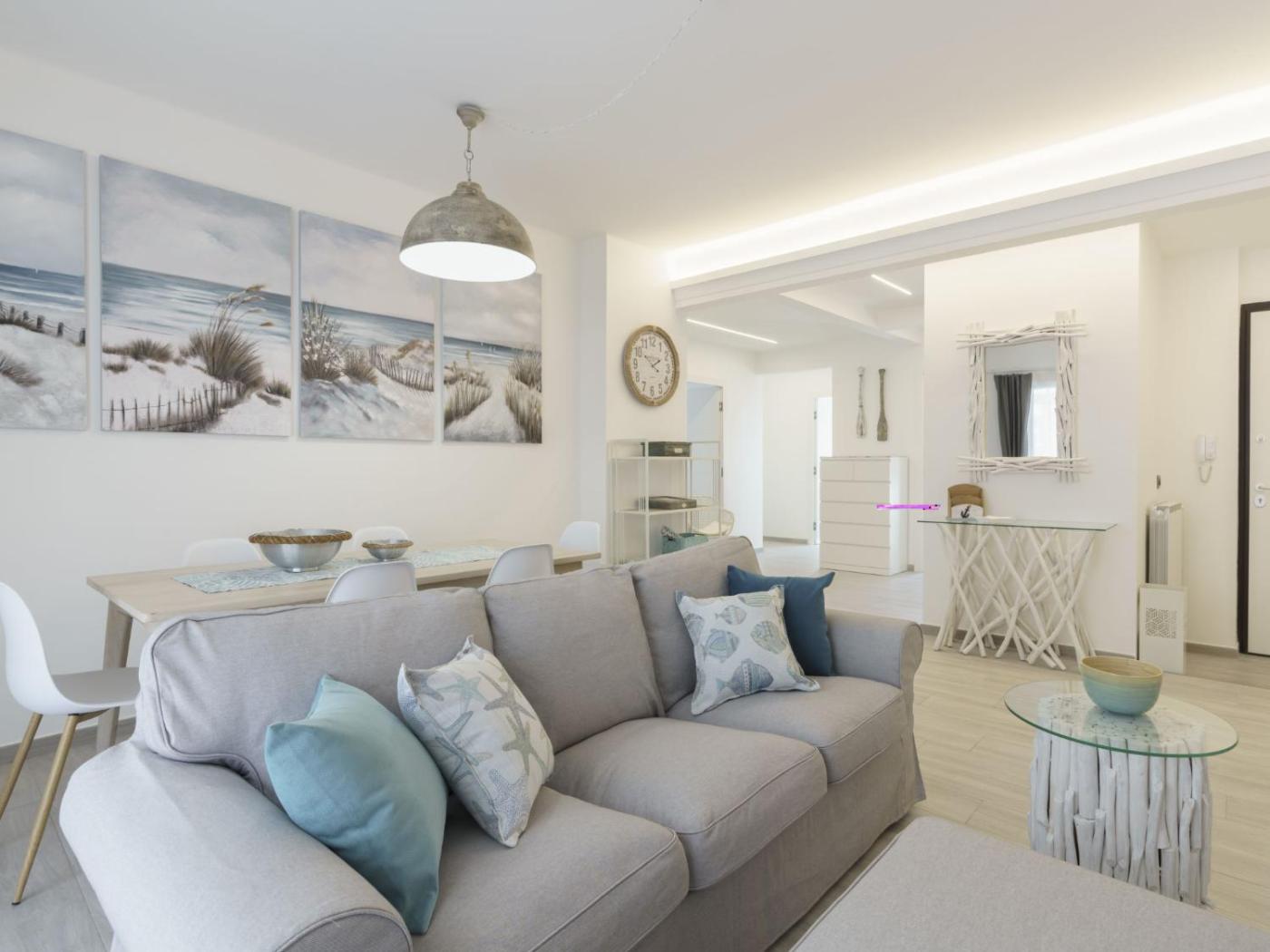 Appartamento. This spacious apartment comprises 3 bedrooms, a kitchen and 2 bathrooms with a bath and a shower. In the fully equipped kitchen, guests will find a stovetop, a refrigerator, a dishwasher and kitchenware. The air-conditioned apartment provides a TV, a washing machine, a coffee machine, a dining area as well as sea views. The unit offers 3 beds.