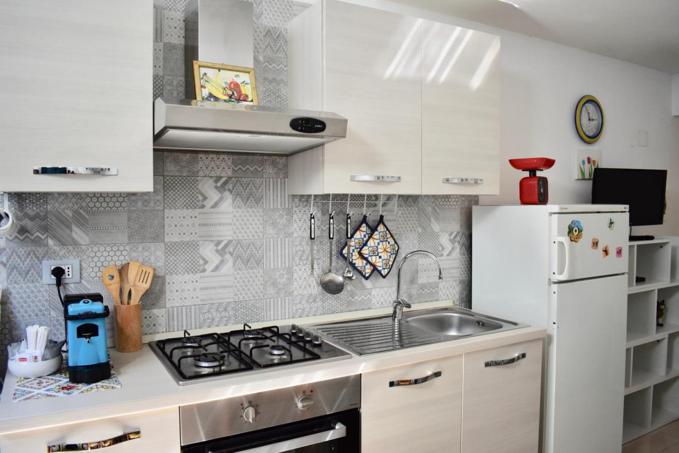 Questa casa vacanze con aria condizionata comprende 2 camere da letto, un soggiorno, una cucina con utensili, frigorifero e macchina da caffè, e 1 bagno con bidet e doccia. Presso questa casa vacanze troverete asciugamani e lenzuola tra i servizi disponibili.