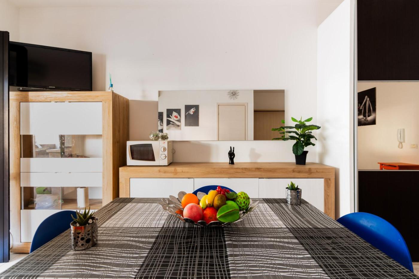 Appartamento con 1 Camera da Letto. The air-conditioned apartment features 1 bedroom and 1 bathroom with a shower and a bidet. In the well-fitted kitchen, guests will find a stovetop, a refrigerator, kitchenware and an oven. The apartment has tiled floors, a seating area with a flat-screen TV, a washing machine, a dining area, as well as a wardrobe. The unit offers 2 beds.