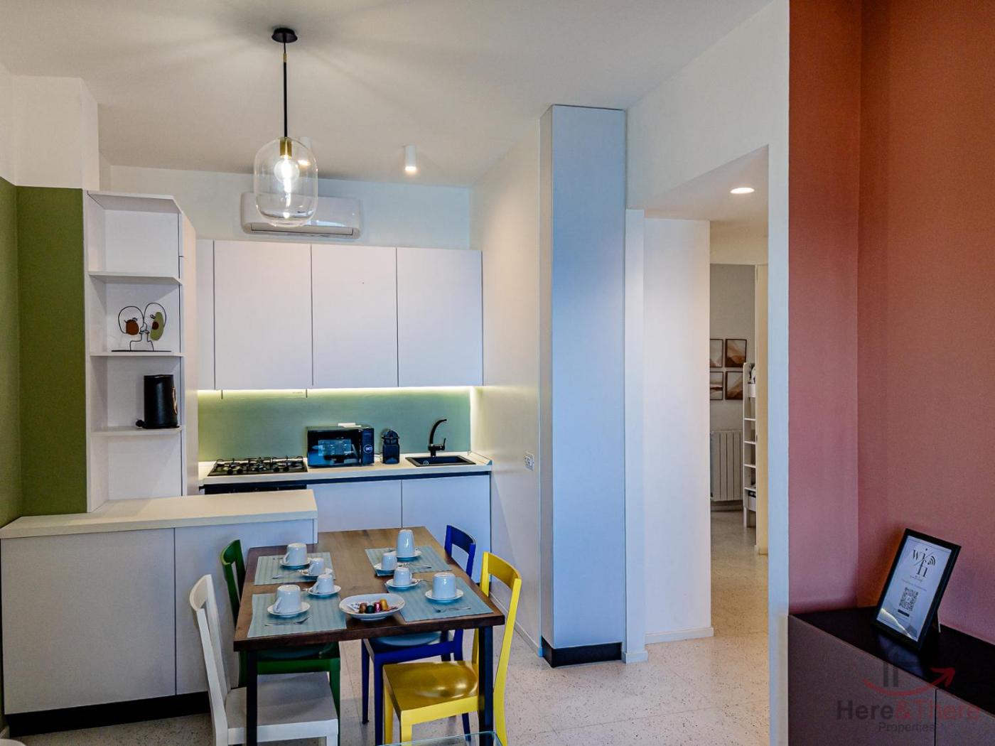 Questo appartamento con aria condizionata comprende 2 camere da letto e 1 bagno con bidet, doccia e asciugacapelli. La cucina prevede frigorifero, lavastoviglie e forno, più macchina da caffè e bollitore elettrico.