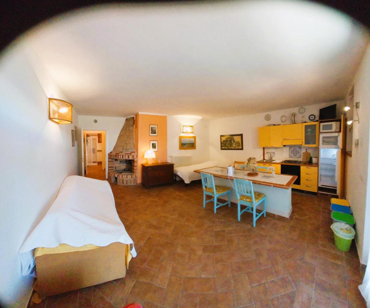 Appartamento con 1 Camera da Letto e Patio. Appartamento affacciato sul cortile posteriore e dotato di patio privato. Appartamento dotato di arredi rustici, pavimenti piastrellati, angolo cottura e zona giorno con TV. ;