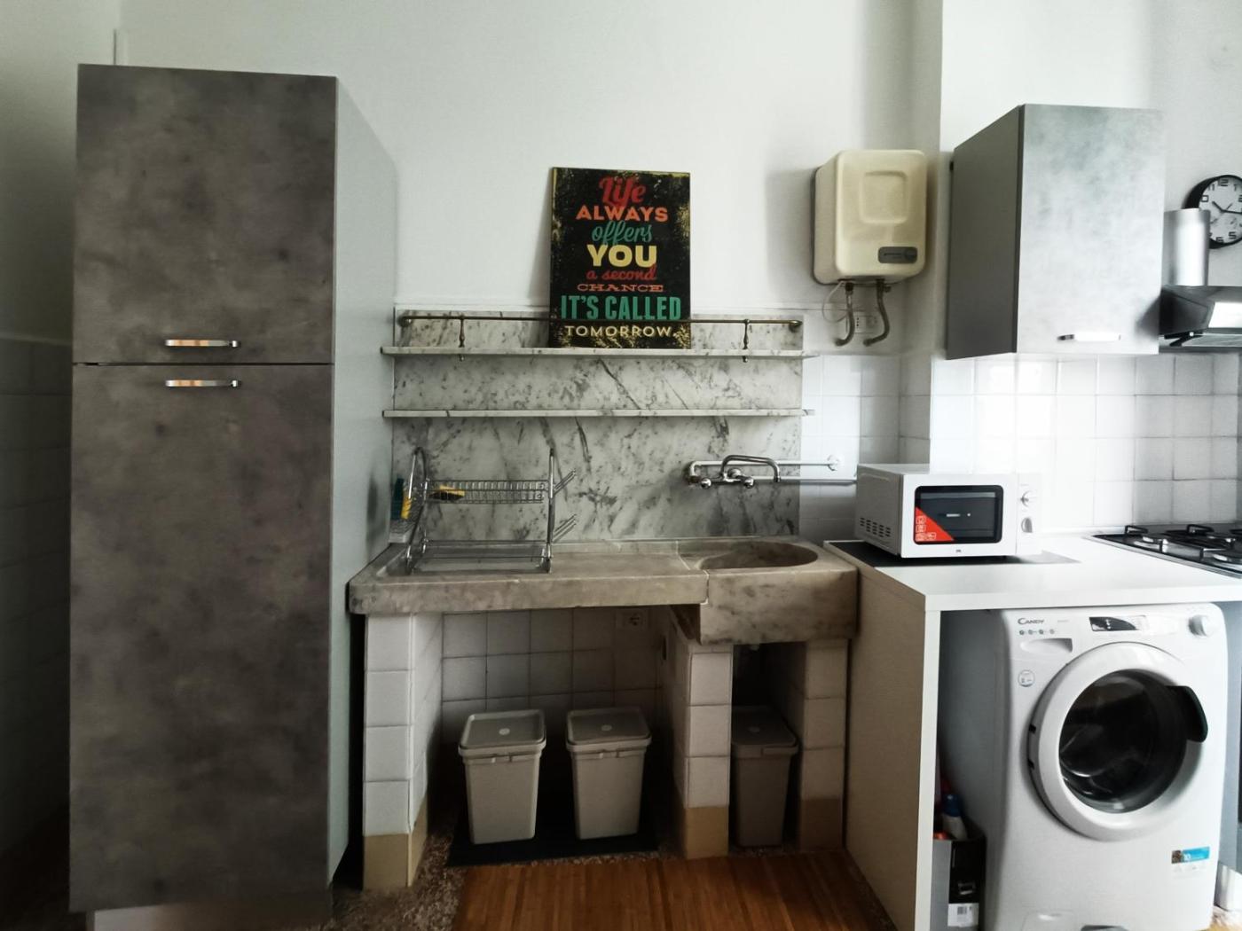 Appartamento con 2 Camere da Letto. The apartment features 2 bedrooms, 1 bathroom and a kitchen. The apartments kitchen is available for cooking and storing food. The spacious apartment provides a washing machine, heating and a balcony. The unit offers 2 beds and 2 futons.