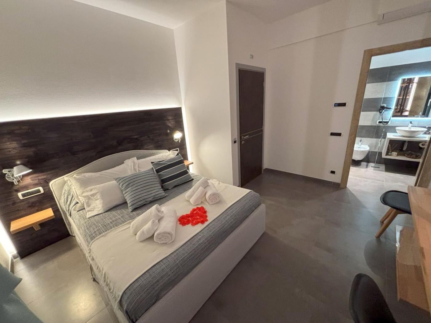 Camera Matrimoniale. Spaziosa camera matrimoniale climatizzata dotata diper la preparazione di tè e caffè, terrazza con vista sul cortile interno e bagno privato con doccia. L’alloggio presenta 1 letto.