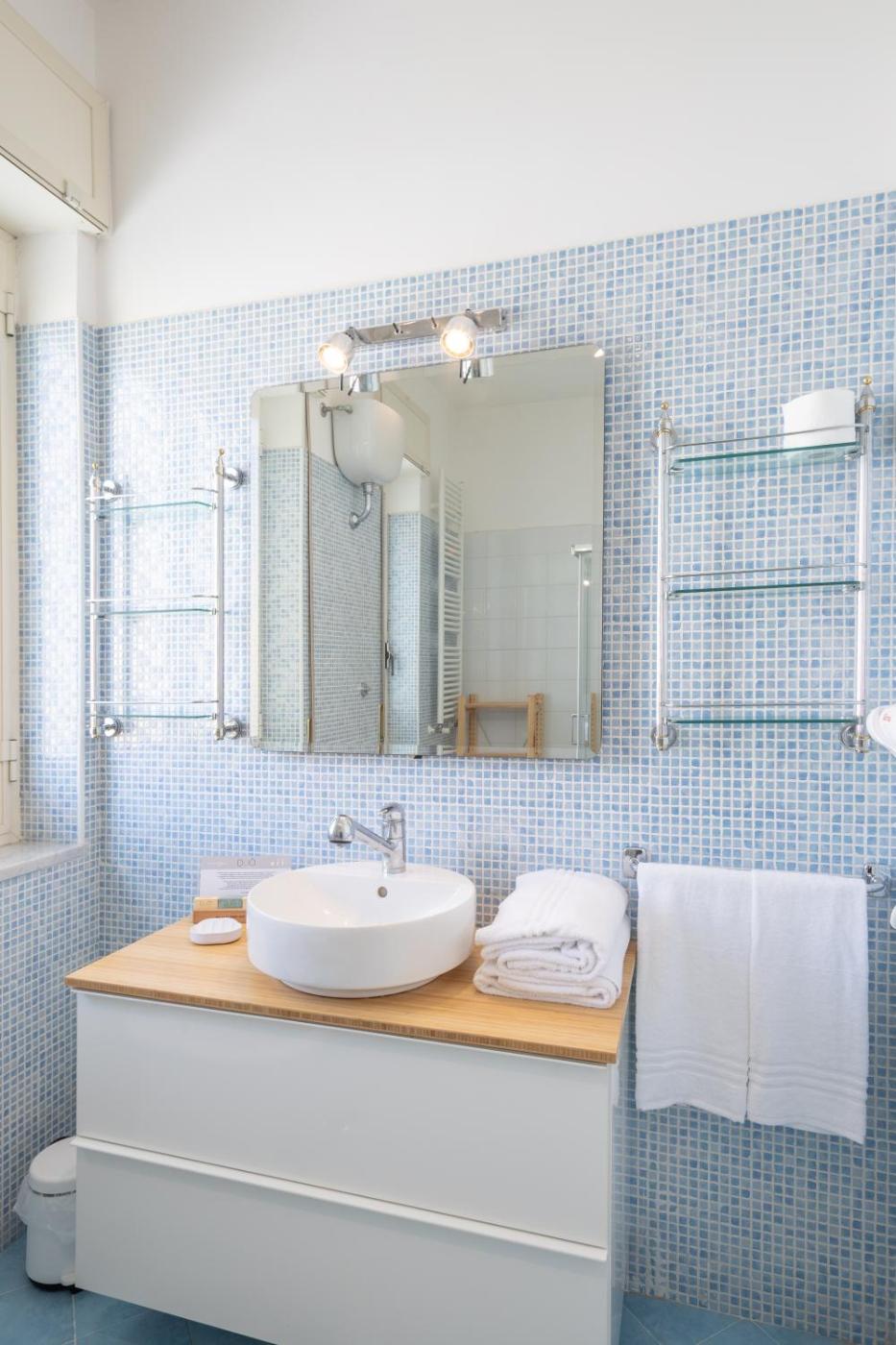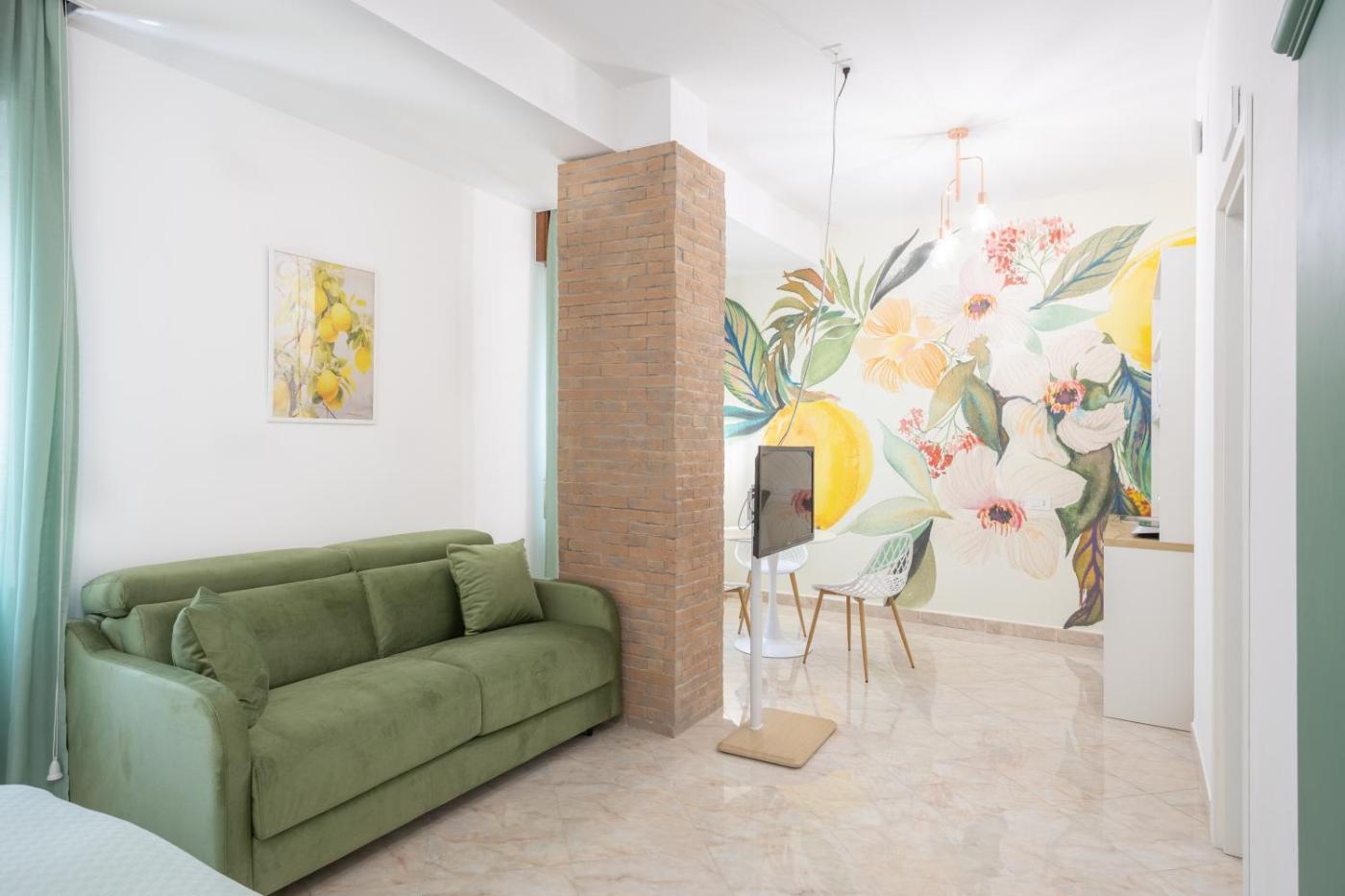 Camera Tripla con Vista Giardino. Offering free toiletries, this triple room includes a private bathroom with a shower, a bidet and a hairdryer. Meals can be prepared in the well-fitted kitchenette, which has a stovetop, a refrigerator, kitchenware and a microwave. The spacious air-conditioned triple room offers a flat-screen TV with cable channels, soundproof walls, a minibar, a tea and coffee maker as well as garden views. The unit has 2 beds. ;