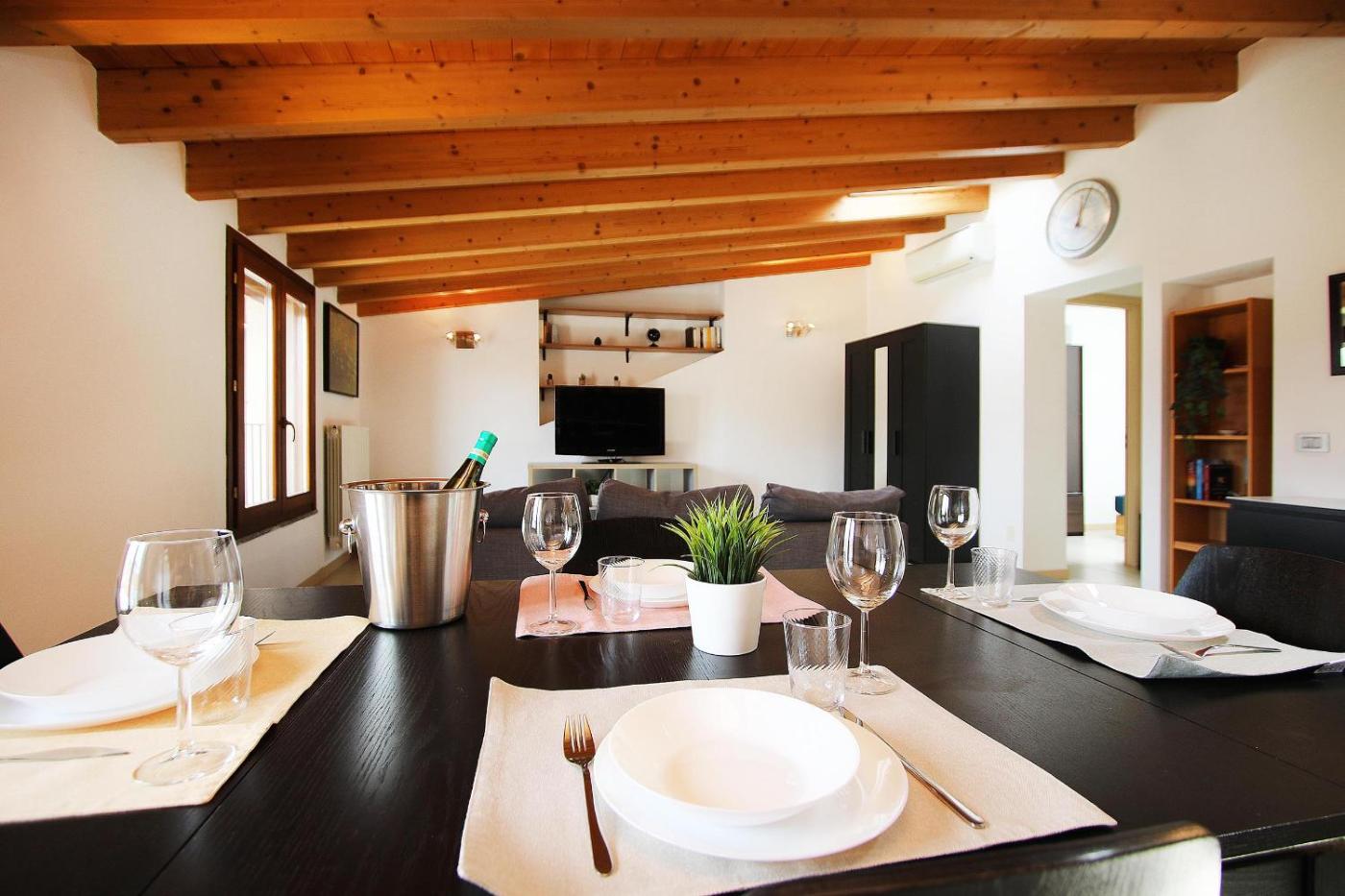 Appartamento con 1 Camera da Letto. This apartment comprises 1 living room, 1 separate bedroom and 1 bathroom with a shower and free toiletries. The well-fitted kitchen features a stovetop, a refrigerator, a dishwasher and kitchenware. The air-conditioned apartment provides a flat-screen TV, a washing machine, a coffee machine, a dining area as well as city views. The unit offers 2 beds.