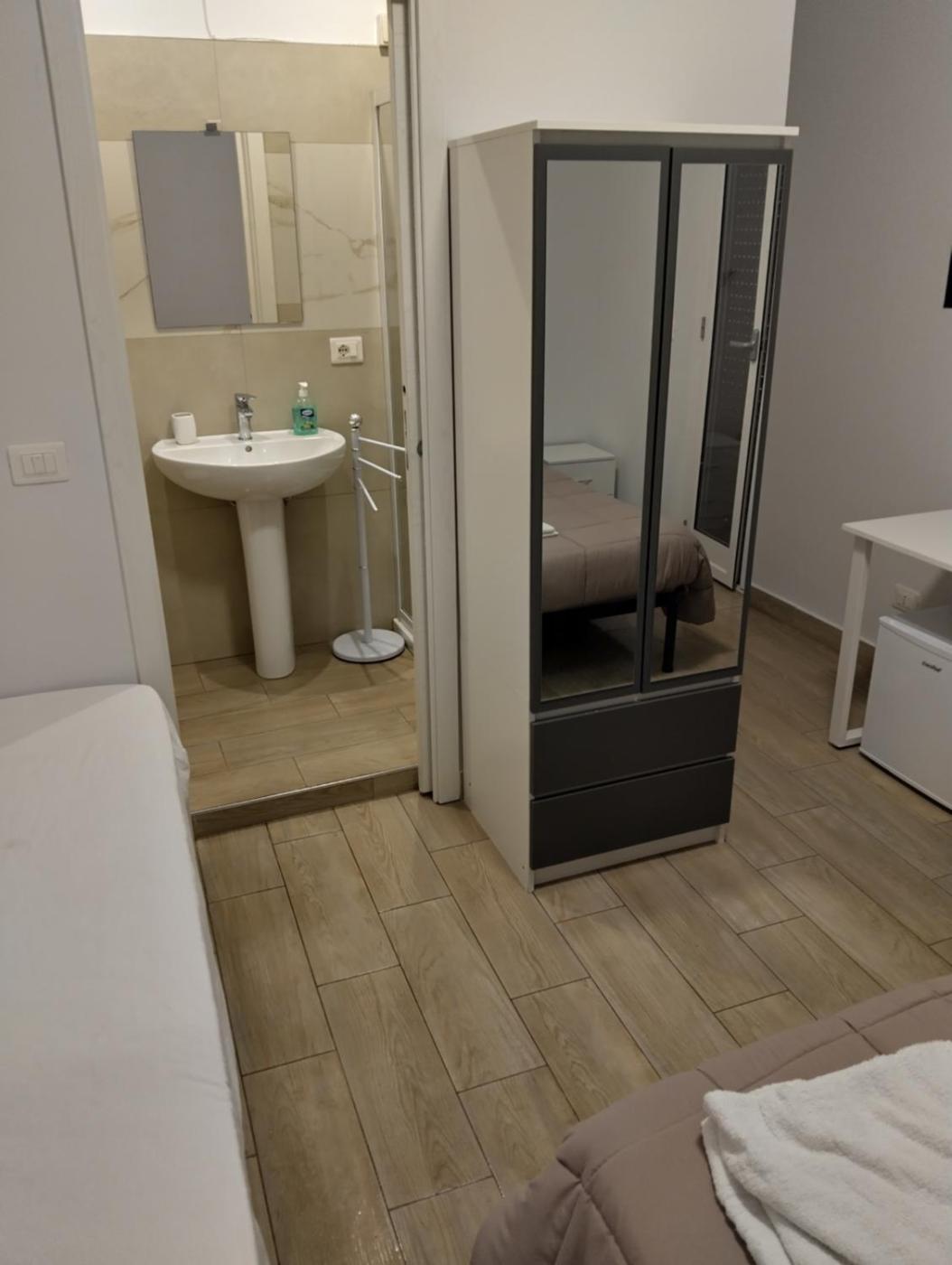Camera Matrimoniale con Balcone. The double rooms kitchen, which has a refrigerator and kitchenware, is available for cooking and storing food. The double room features air conditioning, a dining area, a balcony with city views as well as a private bathroom boasting a shower. The unit has 1 bed. ;