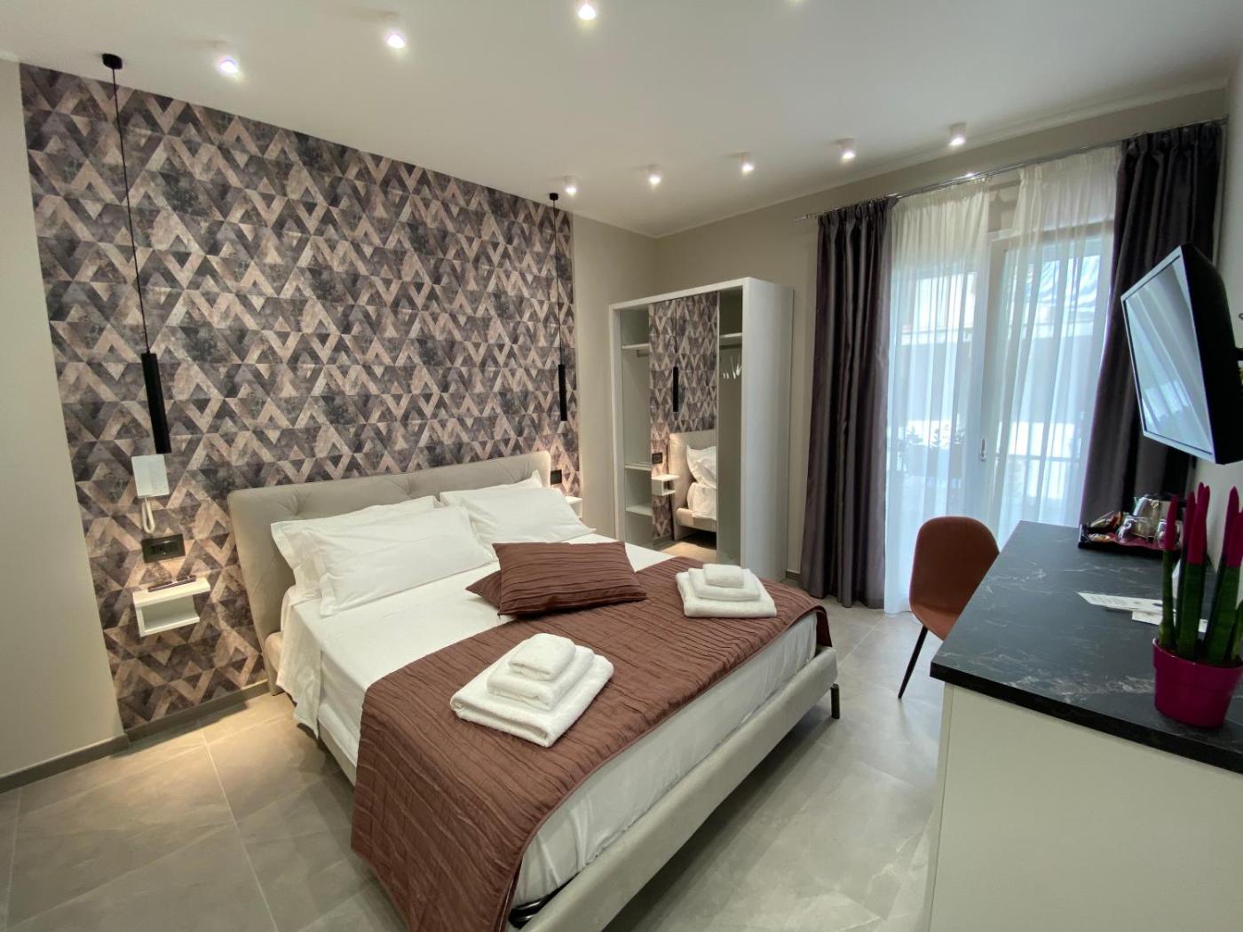 Camera Matrimoniale Deluxe. Camera matrimoniale climatizzata dotata di TV a schermo piatto con canali satellitari, bagno privato e balcone con vista sulla cittĂ . Lalloggio dispone di 1 letto. ;